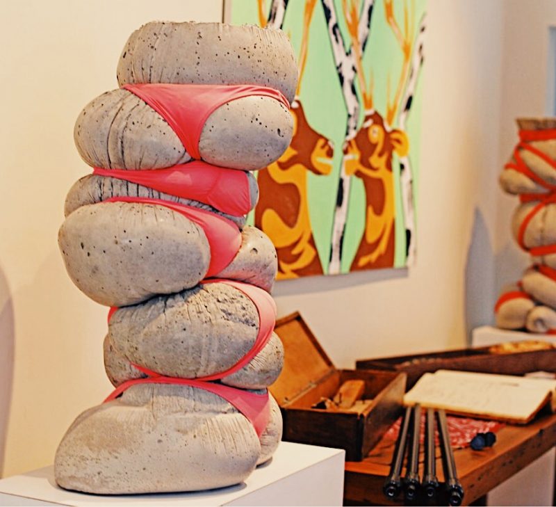 Then the sculpture that you saw out front, the boat, that’s the very last thing I did. I’ve been gradually trying to work on a bigger scale with my work. And the concrete, I’ve gotten up to pieces that were seven or eight feet tall; they weighed 3,000 pounds. So with concrete, I’ve kind of reached my limit for that. This piece, which to fill my desire to work larger, is made of fiberglass, which is lighter and more manageable, and allowed me to work on that scale. So that’s my latest thing, which is again, completely different from what I’ve done with any of this or anything I’ve done before. I’m starting anew.